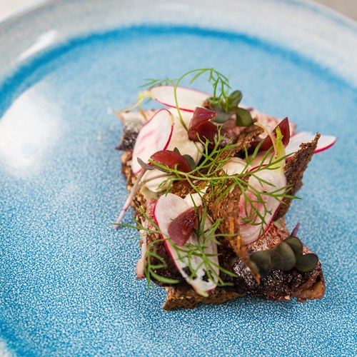 Vi lægger vægt på gode madoplevelser. Vi laver velsmagende, moderne og velanrettet mad med udgangspunkt i sæsonens råvarer og samarbejder med lokale leverandører, blandt andet Stauning Whisky. Se vores aktuelle menukort, der skifter løbende.